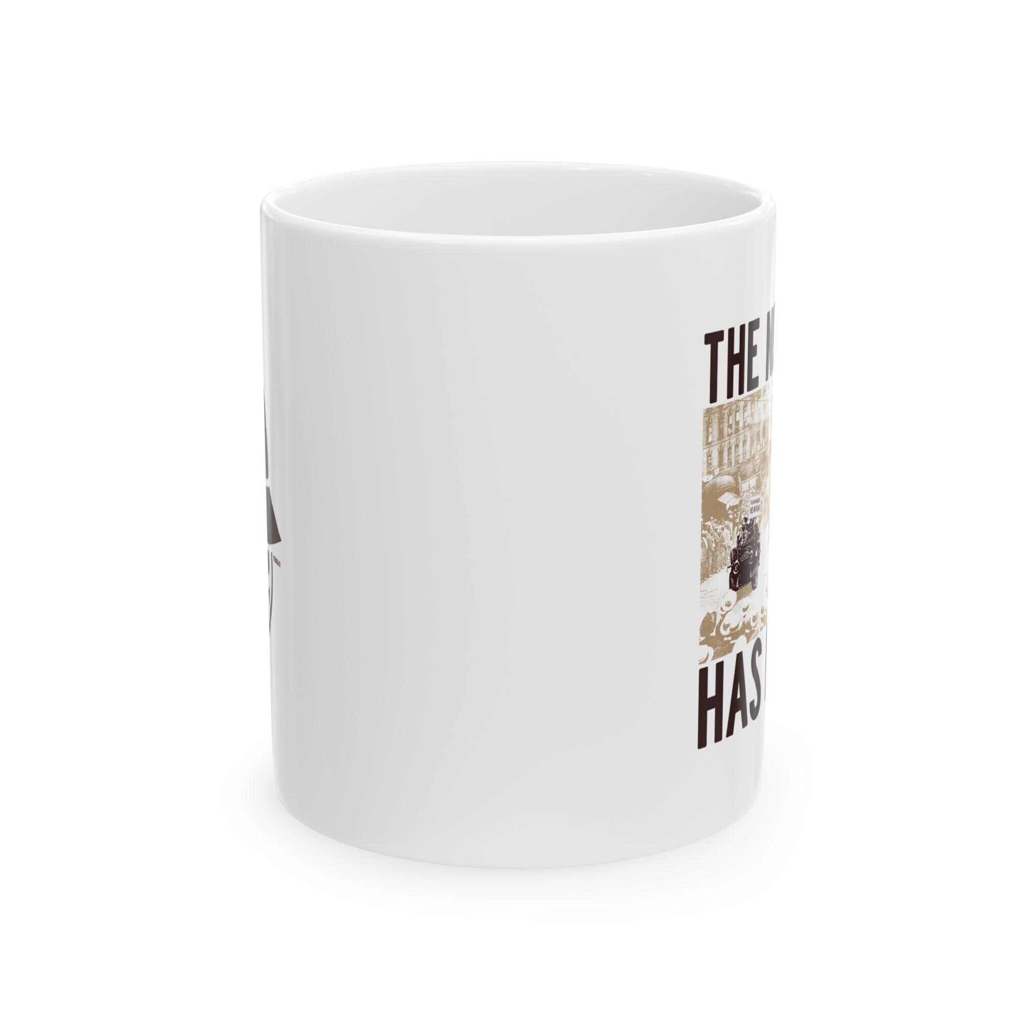 A sturdy ceramic mug that brings history and conversation to your morning ritual. The glossy white surface showcases a bold, vintage-style design in rich, crisp tones — imagery that feels like a page pulled from an old newspaper or wartime poster. It fits naturally into a work-from-home desk, a study lined with books, or a kitchen table where thoughtful conversations begin. Hold the comfortable C-handle, sip slowly, and let the mug’s character anchor a quiet moment of reflection or spark a connection with someone who notices the artwork.