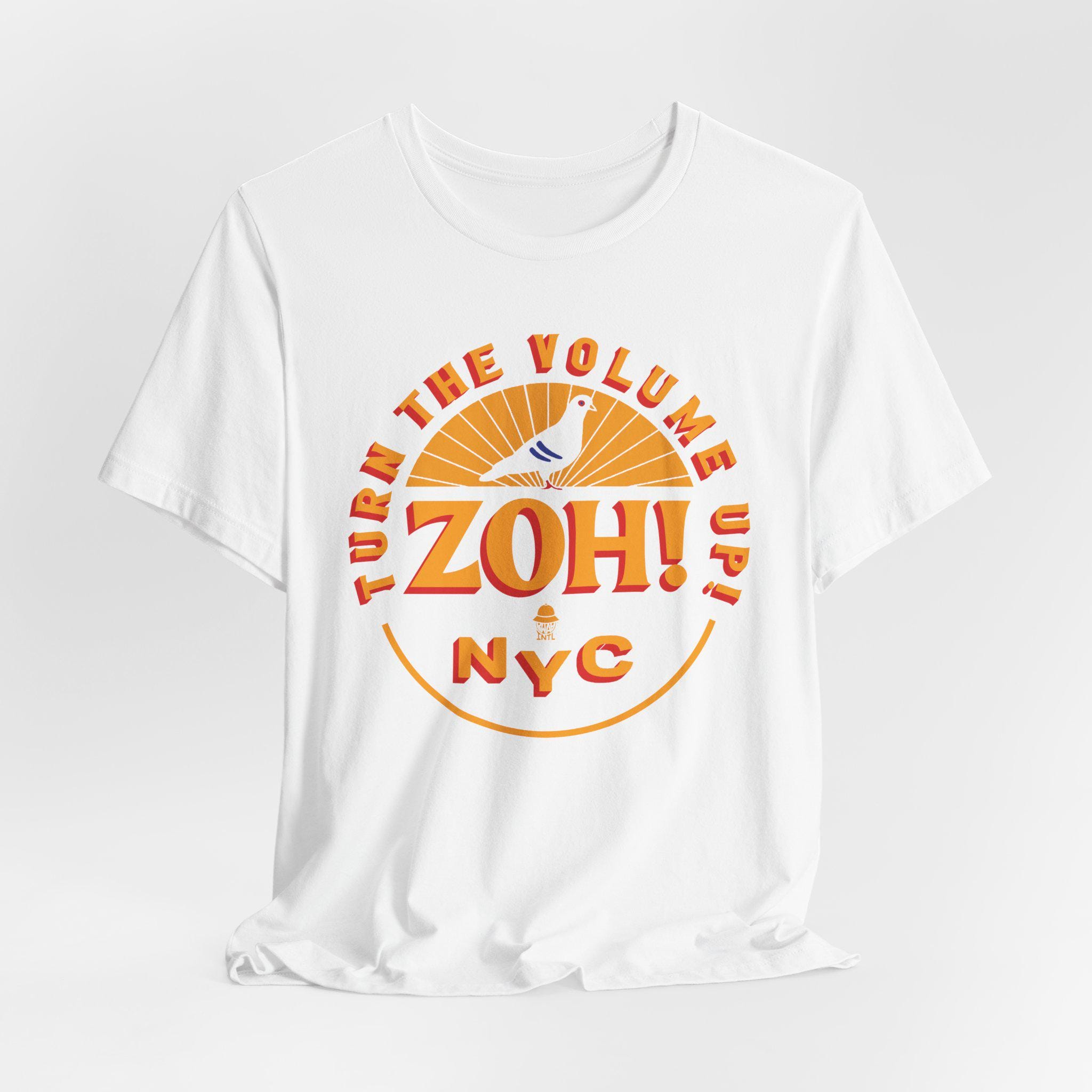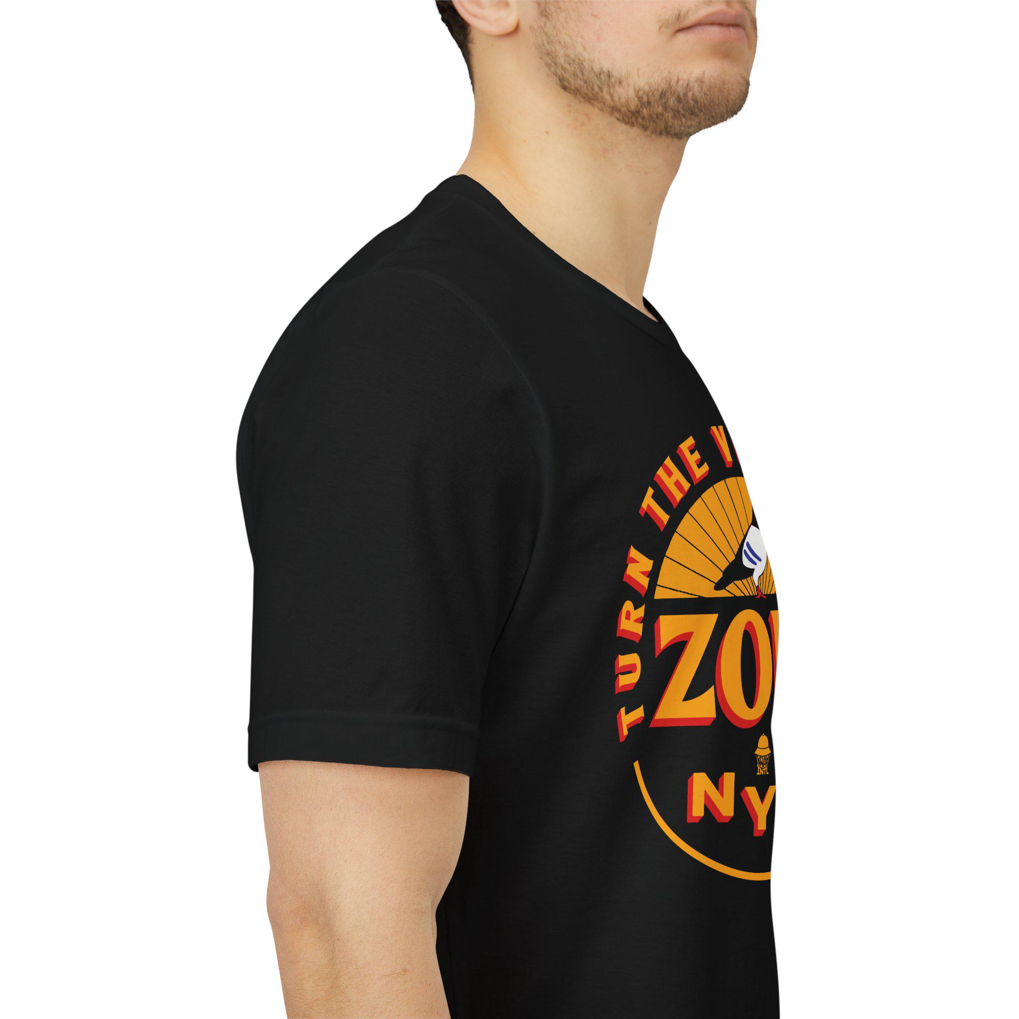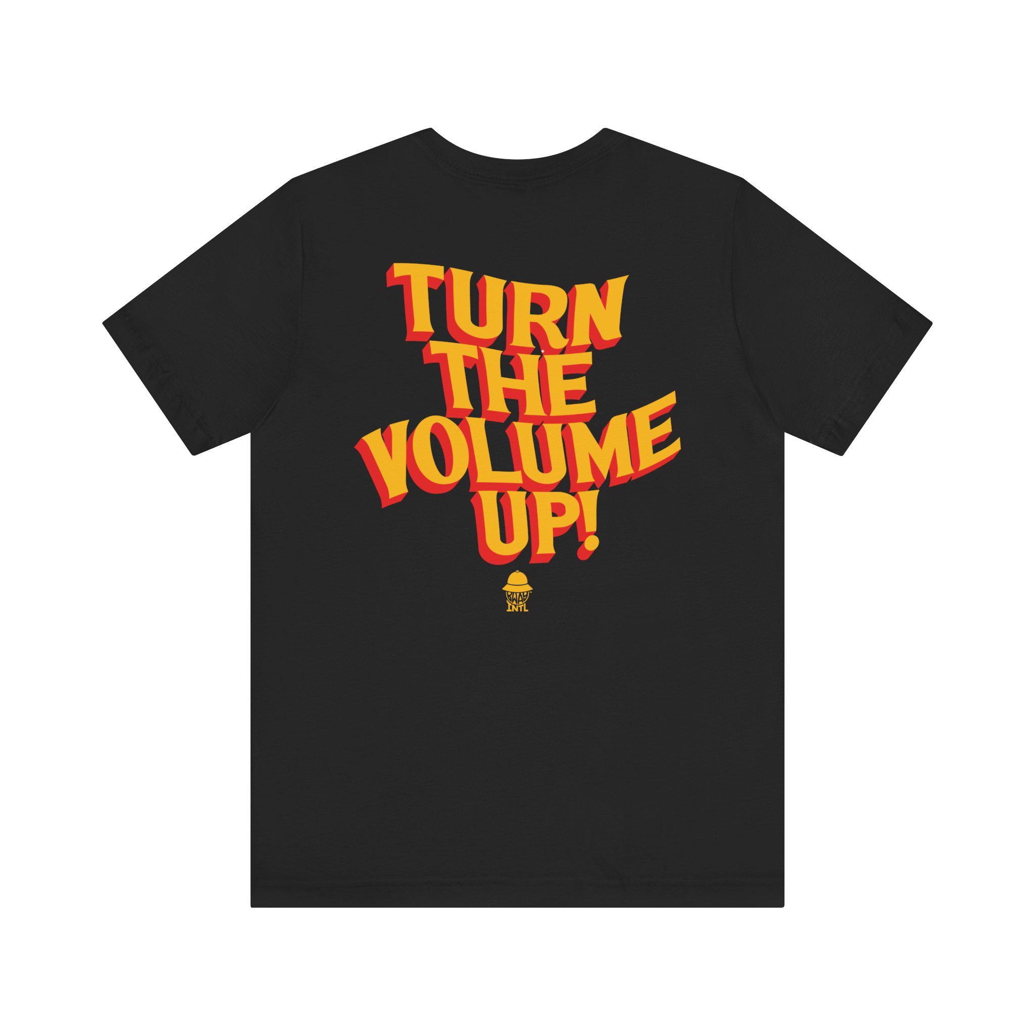 This lightweight jersey tee brings bright, vintage energy to everyday wear. Soft Airlume combed and ring-spun cotton keeps the fabric breathable and smooth, while the ribbed crew neck and side seams hold the shape through repeated wear. Bold, sunburst-inspired front artwork and a 3D-style back slogan read “TURN THE VOLUME UP!” in warm orange and gold tones—it feels like a summer soundcheck on the city streets. Wear it layered under a denim jacket for late-night shows or on its own while wandering the boroughs. The tear-away label and stable shoulder tape make it comfortable for long days and long sets. Ethically produced and REACH certified, this tee blends conscious manufacturing with unmistakable attitude.