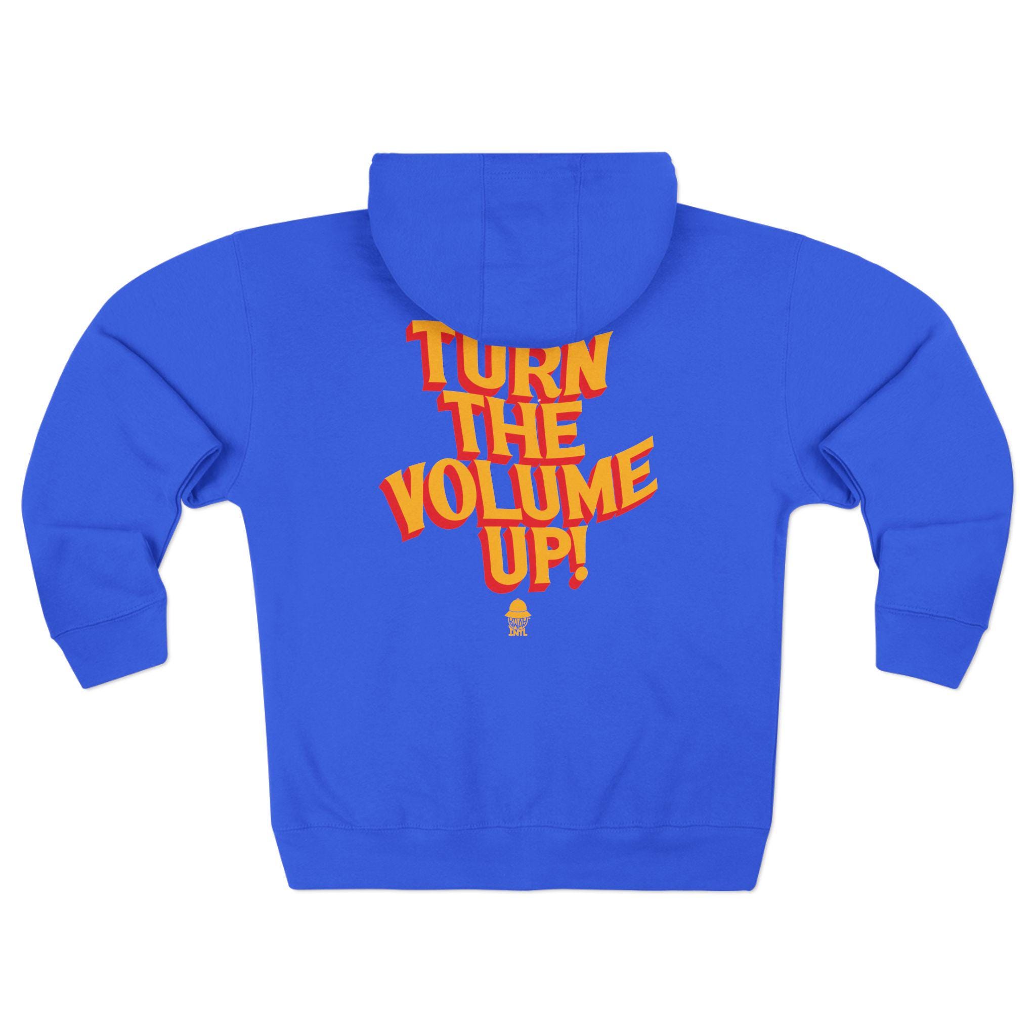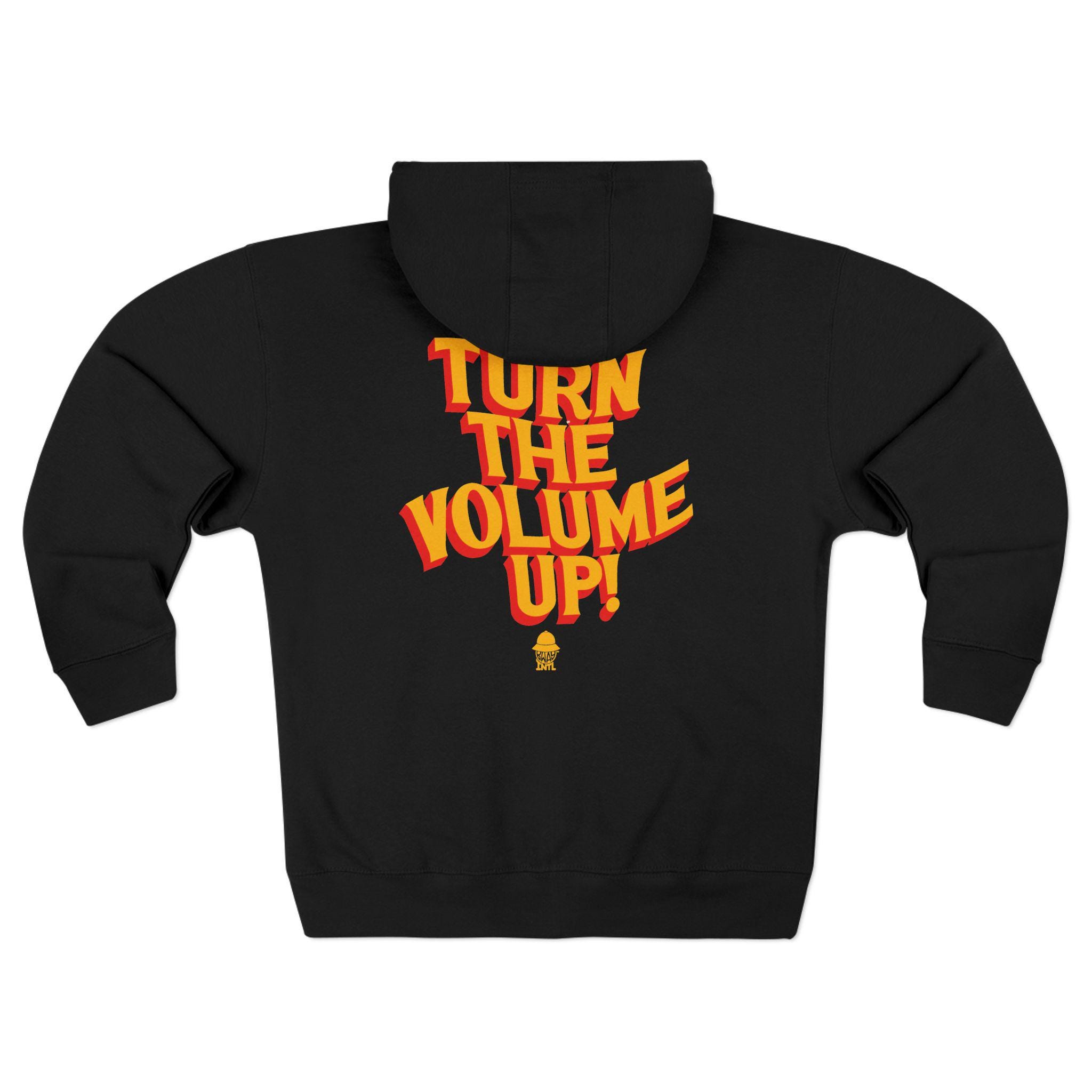 This zip-up hoodie brings bold, retro energy to your everyday lineup. The front shows a compact, sunburst-inspired NYC badge in warm oranges, while the back explodes with a playful, vintage-style “TURN THE VOLUME UP!” graphic. Thick, soft fleece and a three-panel hood make it a cozy layering piece for cold commutes, late-night gigs, or city walks when you want a little attitude and comfort. The roomy kangaroo pocket and reliable YKK zipper keep things practical; the tactile ring-spun cotton blend feels smooth against the skin and holds print detail beautifully. Wear it when you need a confident, music-forward statement that still feels lived-in and easy.